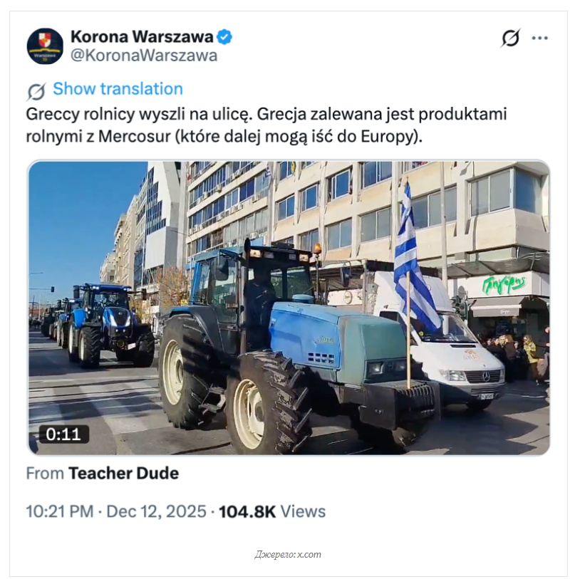 Фейк: грецькі фермери протестують проти угоди ЄС з Меркосур