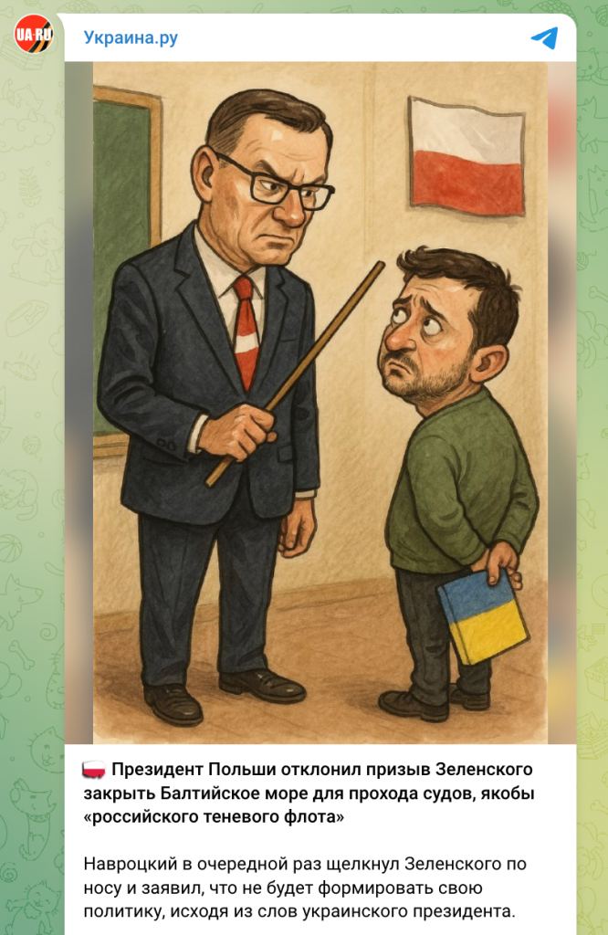 Pro-Russian media are spreading disinformation claiming that Polish President Karol Nawrocki allegedly “categorically rejected” or “harshly responded” to a proposal by Ukrainian President Volodymyr Zelenskyy to close the Baltic Sea to Russia’s so-called “shadow fleet”. Analysts from StopFake have drawn attention to this.