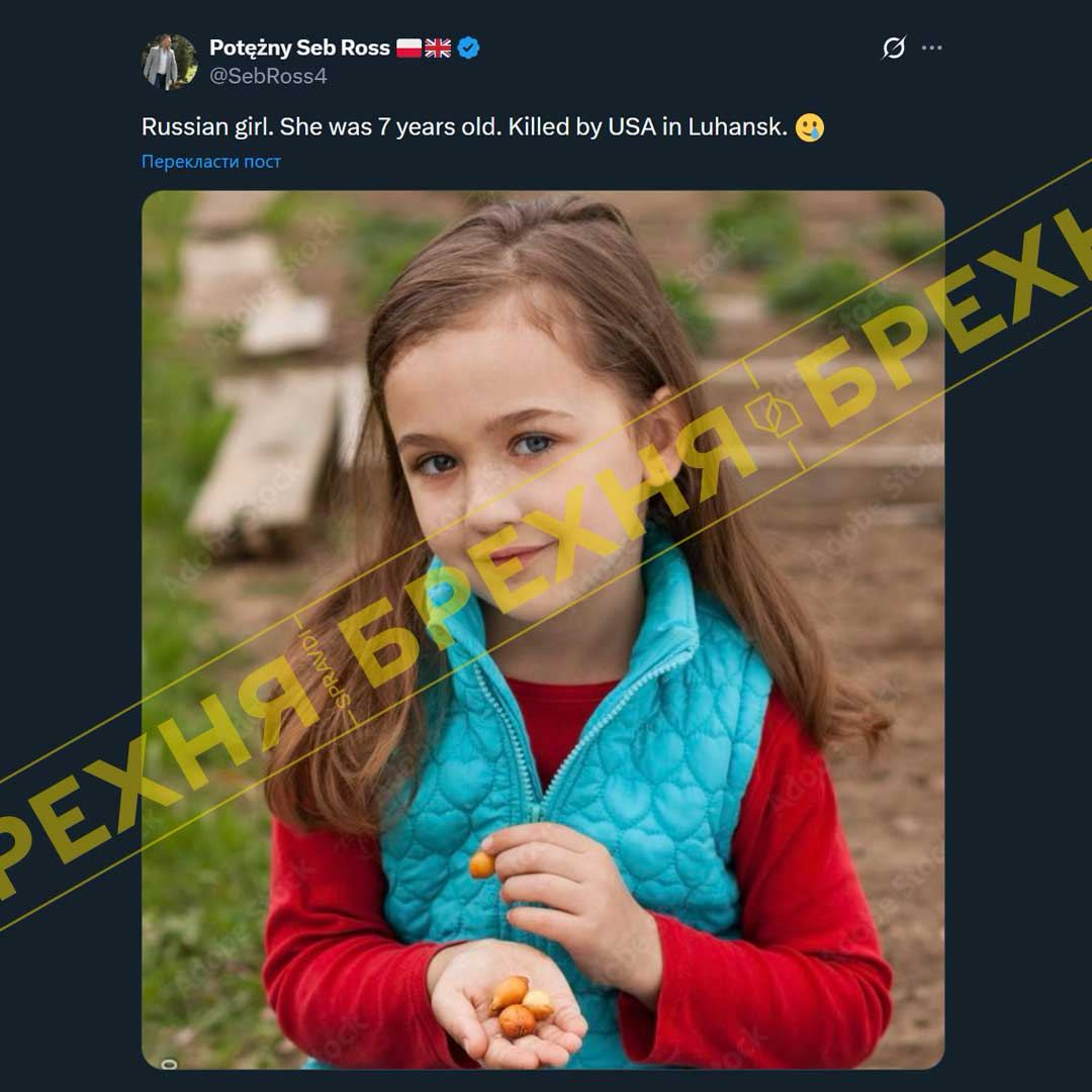 Former Polish presidential candidate Seb Ross posted a claim on social media alleging that “Americans killed a seven-year-old Russian girl in Luhansk”. As “evidence”, he attached a photograph of a girl.