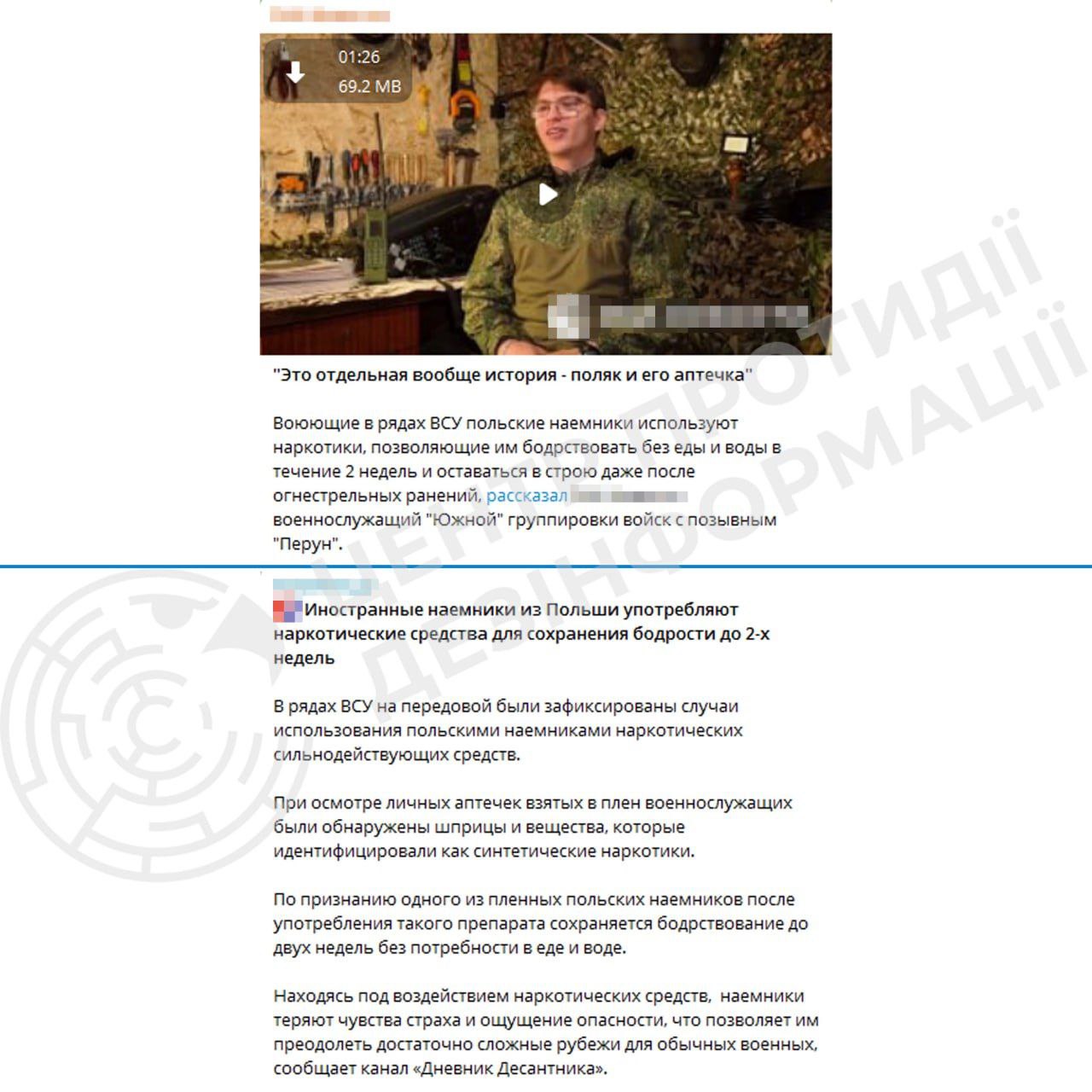 Russian propagandist outlets are spreading another fake, claiming that “Polish mercenaries” are fighting against Russia in Ukraine and allegedly using drugs that allow them “not to sleep or eat for up to two weeks”. The only source of this information is the words of a person presented by propagandists as a Russian serviceman, without any additional evidence or confirmation. This fake has been debunked by specialists from the Center for Countering Disinformation (CCD).