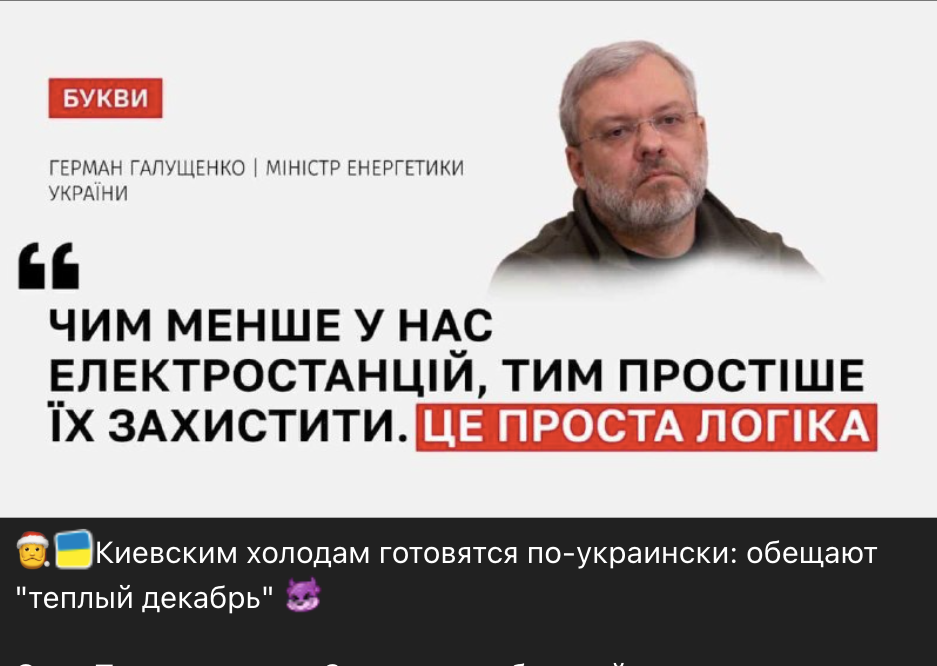In reality, this quote is completely fabricated. It first appeared back in June last year, when Herman Halushchenko was indeed serving as Minister of Energy. However, as of July 17, 2025, he was replaced in the post by Svitlana Hrynchuk. Neither Halushchenko nor his successor has ever made such comments to Bukvy or to any other Ukrainian media outlet. The fake news was circulated exclusively through pro-Russian sources linked to the Kremlin. This year, it was “revived” ahead of the heating season in an attempt to discredit the Ukrainian government and create an impression of chaos in the energy sector.