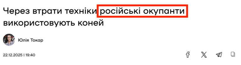 Фактичне використання коней російськими підрозділами подається як «українська практика», щоб зняти відповідальність із російського командування та нормалізувати деградацію їхньої армії.
