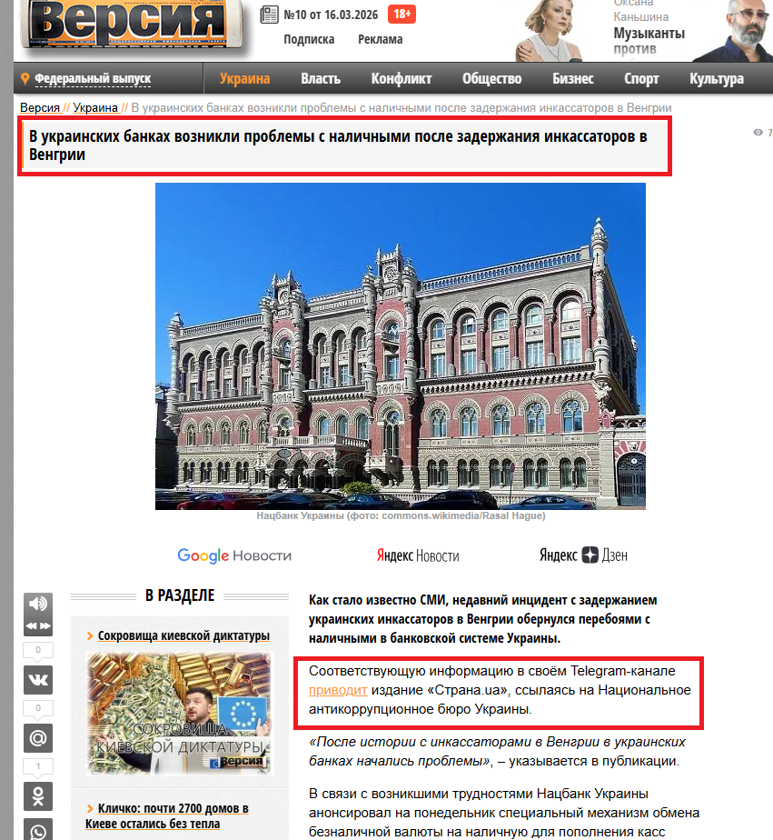 6 березня 2026 року угорські правоохоронці затримали два інкасаторські автомобілі державного Ощадбанку, які перевозили валюту та золото з Австрії (Raiffeisen Bank International) до України. Загальна вартість вантажу — близько €69 млн (зокрема $40 млн, €35 млн готівкою та 9 кг золота у зливках). Це була звичайна міжбанківська операція з підкріплення ліквідності банківської системи України, забезпечення роботи обмінних пунктів та виплат за депозитами клієнтів.