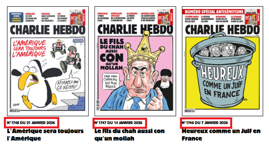 Підробка обкладинок Charlie Hebdo є регулярним прийомом російських пропагандистів. Детальніше про це читайте в матеріалі: «ШІ-українці», рекорд підробок обкладинок Charlie Hebdo і LLM-grooming. Головні тренди російської пропаганди 2025 року.