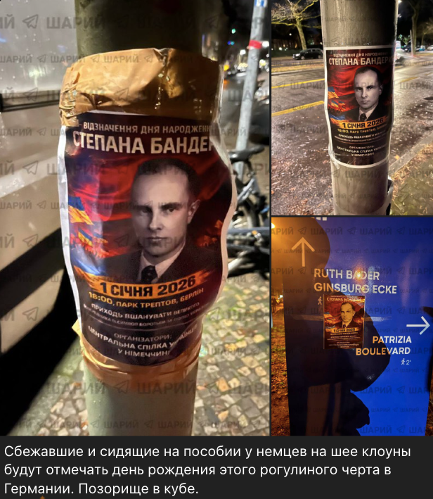У мережі активно поширюється фотографія плаката, який нібито анонсує масове святкування дня народження Степана Бандери в одному з парків Берліна 1 січня. В оголошенні організатором заходу вказано Центральну спілку українців у Німеччині — відому громадську організацію, що працює з 2007 року. Проте, як з’ясувалося, ані такого заходу, ані подібних плакатів офіційно не існувало, а саме дезінформаційне повідомлення спростували «StopFake».