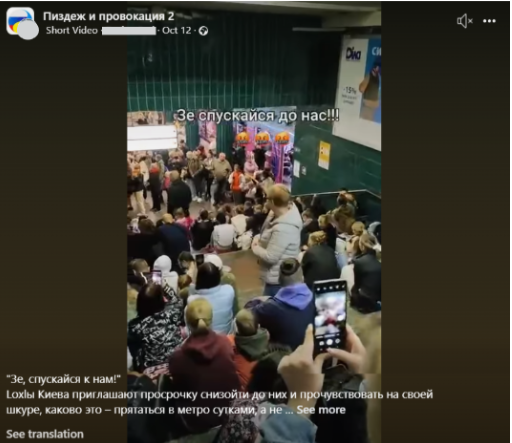 У соціальних мережах (зокрема, грузиномовні та російськомовні акаунти у Facebook) 12-13 жовтня поширили відео, яке зняте в київському метрополітені. Згідно з описами, на кадрах зафіксовано, як кияни під час російського обстрілу нібито скандують: «Зе, спускайся до нас», нібито вимагаючи від Володимира Зеленського спуститися до метро замість того, щоб перебувати у «приватному комфортабельному бункері». Цю маніпуляцію спростовують грузинські фактчекери Mythderector